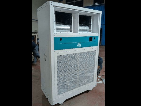 تیم فنی ما با بررسی شرایط محیطی و محدودیتهای دسترسی در محل، اقدام به طراحی و ساخت یک کولر صنعتی با ظرفیت ۲۰ تن تبرید نمود.